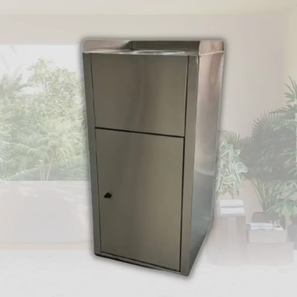 A Lixeira fast food porta líquidos Ecobin é produzida totalmente em aço inoxidável 430 ou 304 de alta resistência.
